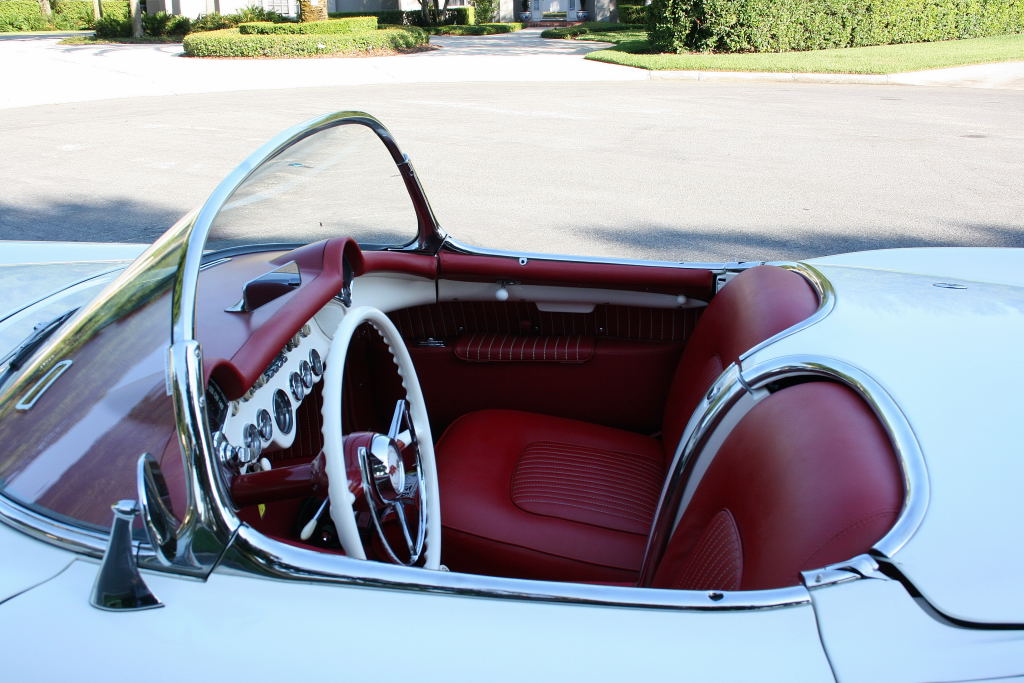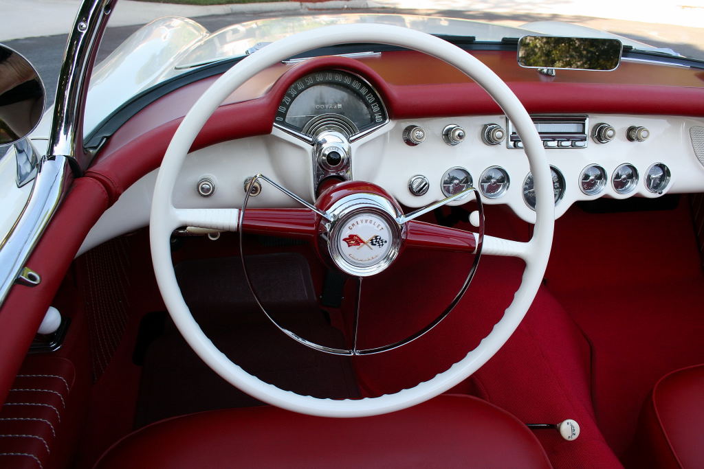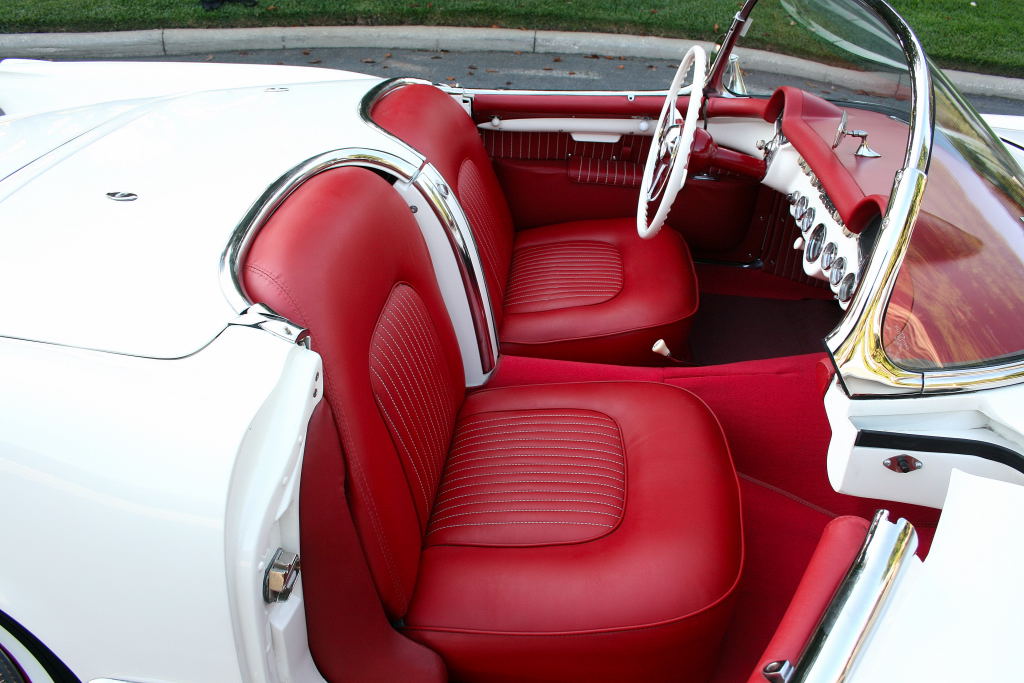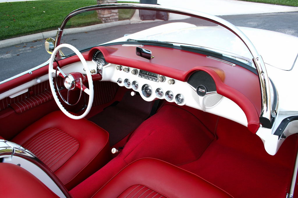 1954 Chevrolet Corvette Convertible Possibly one of the nicest in the U.S., this beautifully restored Corvette has only 120 miles since completion and has been garage kept and meticulously maintained. Finished in its original Polo White with a perfect red bucket seat interior, it features excellent chrome, stunning trim, and a mint restored trunk. Powered by its rebuilt original 235ci Blue Flame 6-cylinder engine with factory dual carbs and automatic transmission. Everything works — including the clock. Show-ready and collector quality throughout.